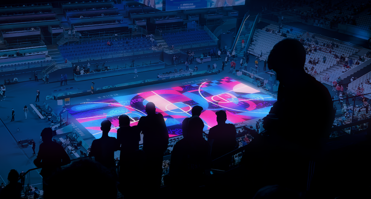 Created for Paris 2024 Olympic Games, this projection mapping experience brought the spirit of street art to life on sports courts. The piece reimagines graffiti and street culture through the lens of digital art — blending textures, paint sprays, hand-drawn elements, and motion design into large-scale animated murals. Powered by precise projection mapping, every surface became a playground for light, movement, and color, echoing the energy of the streets and the momentum of the Games.