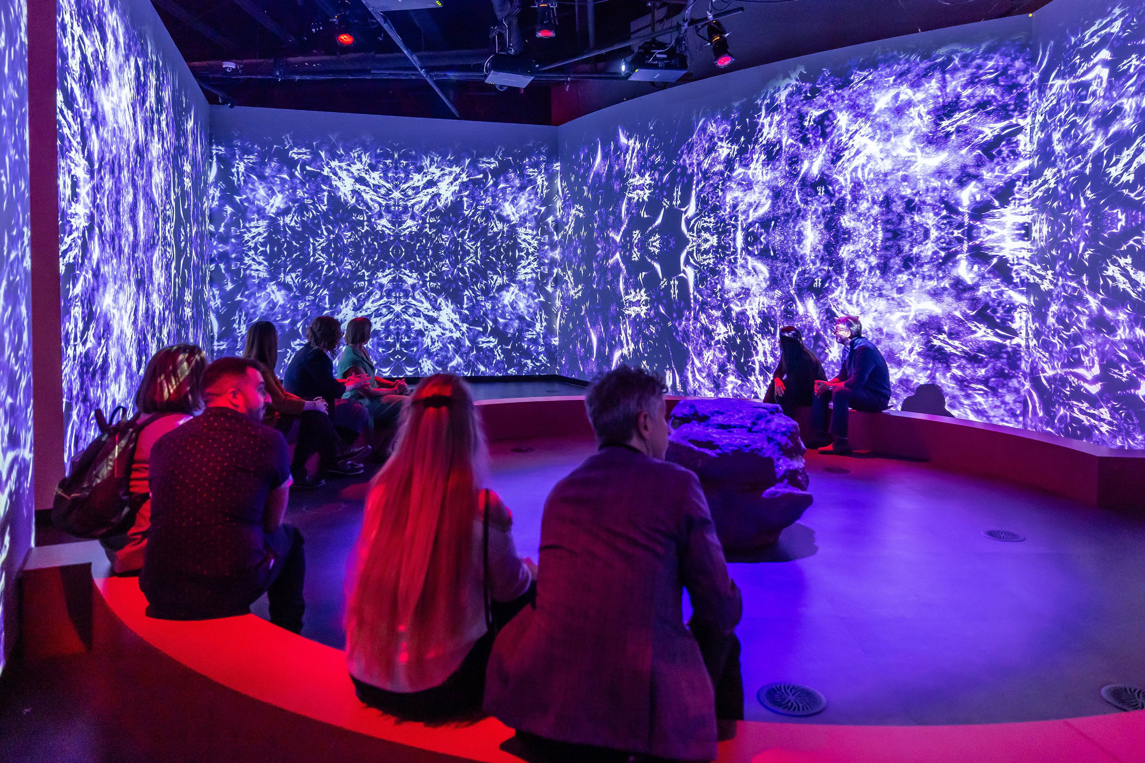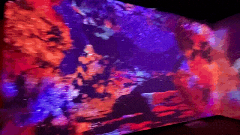 This immersive room surrounds you with vivid 360° projections, blending surreal art and science to envision life on Mars. This immersive space invites reflection on humanity’s future beyond Earth.