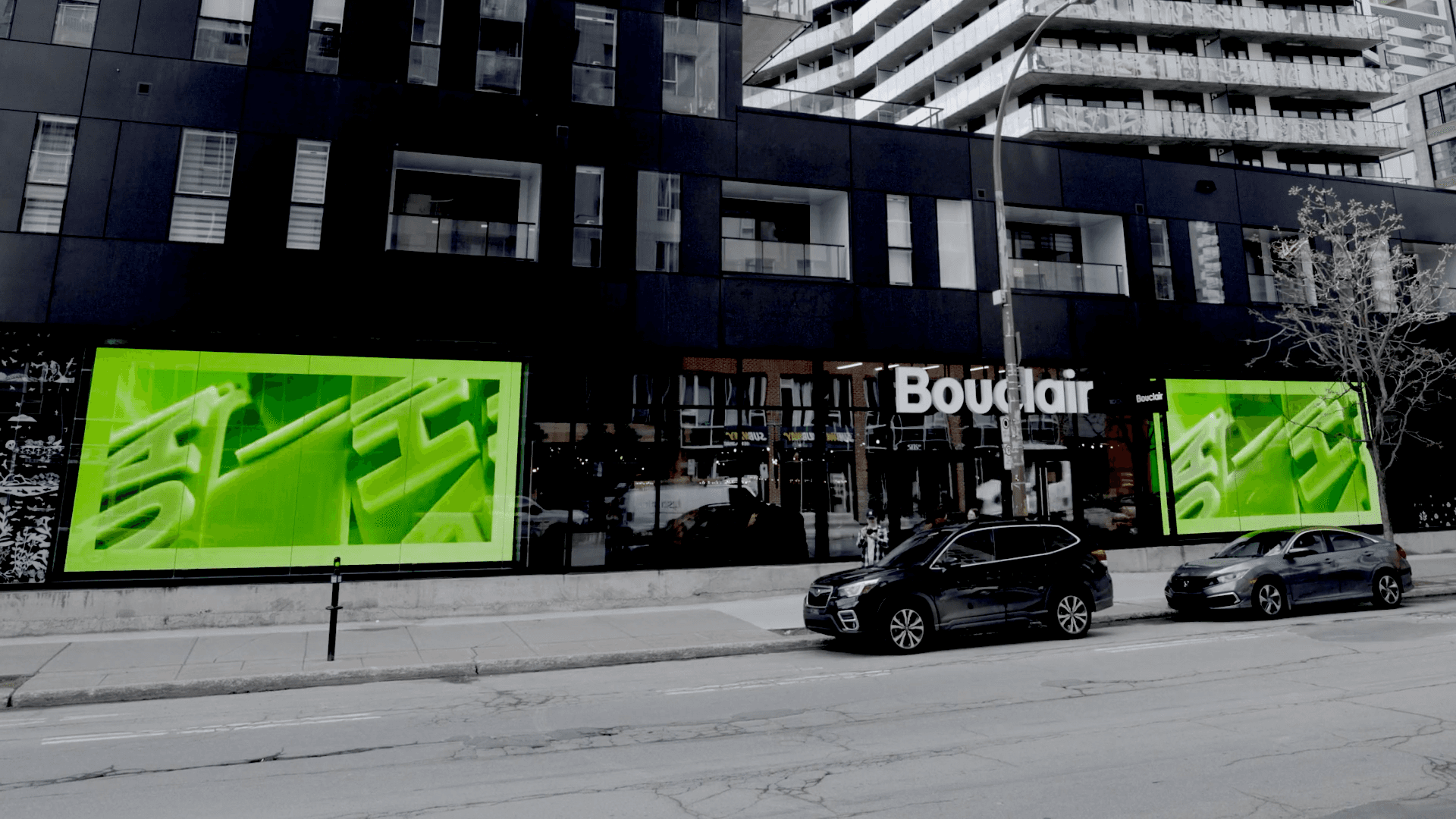 Bouclair partnered with Rodeo FX to craft a striking urban showcase for the grand opening of its flagship store in Griffintown. Over time, we refreshed the animations and content to keep the cityscape alive. Displayed on Montreal’s largest outdoor screen, the visuals invite passersby to engage with an interactive and immersive experience.